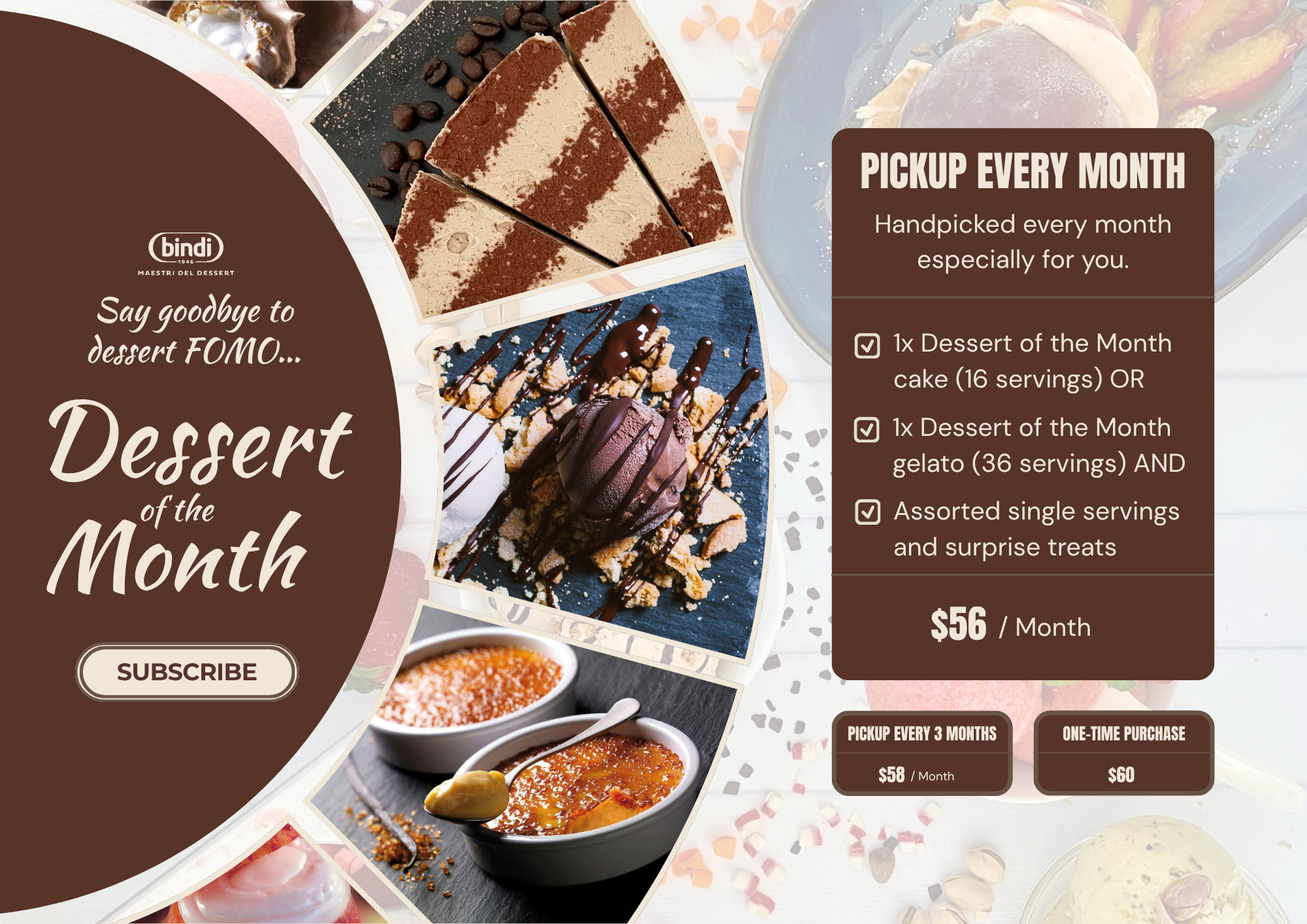 Say goodbye to dessert FOMO and say hello to our Dessert of the Month Club! Get your sweet fix from our carefully curated selection of indulgent desserts, handpicked every month especially for you. Fill your freezer with our delicious treats, and you’ll always have something sweet for some self-love or to bring along in any get-together with family and friends.